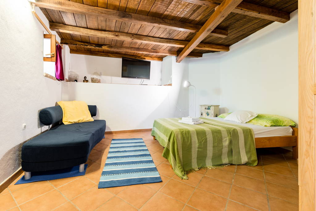It also has bathroom with a bathroom sink and toilet. The shower with warm water is outside, located in the garden and out of sight.